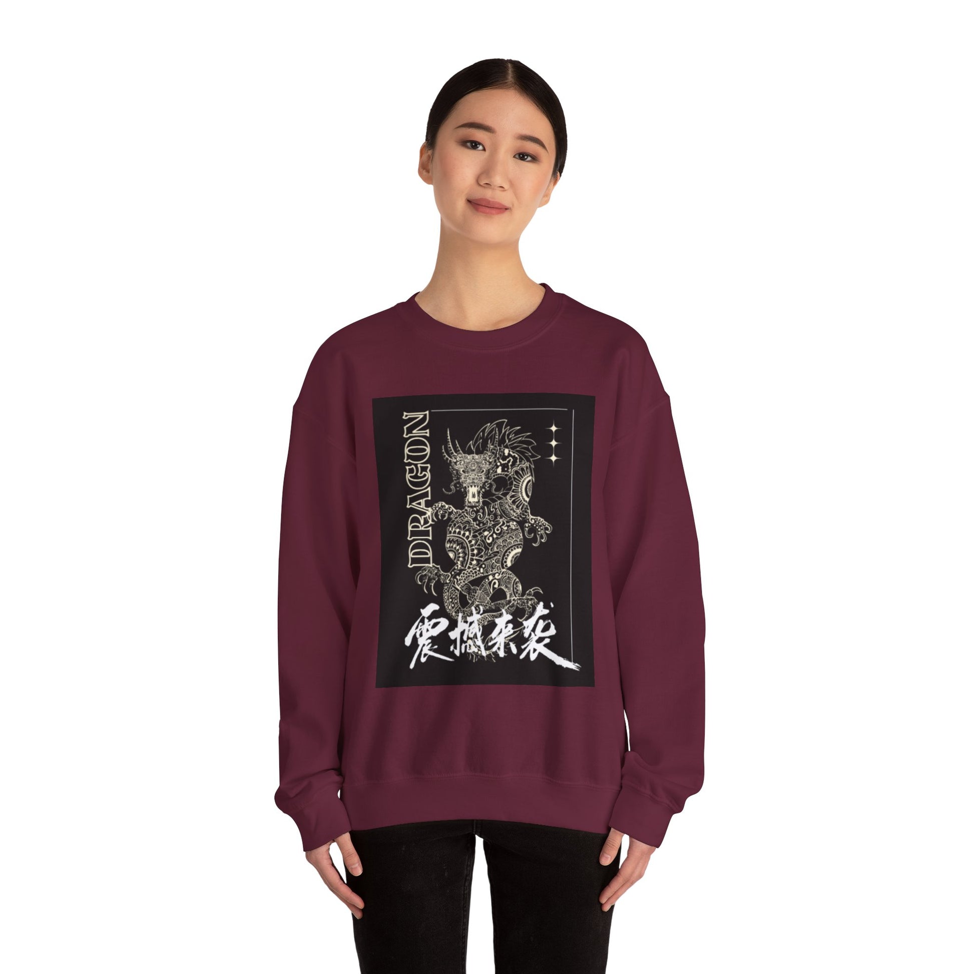 This cozy crewneck blends street-ready style with an Oriental-inspired dragon illustration that feels both bold and quietly detailed. The soft, midweight fabric sits comfortably against the skin and the relaxed, classic fit layers easily over tees or under jackets. Embroidered and printed accents add texture and depth, while the subdued palette keeps the look wearable every day. Wear it when you want a little mythic energy in your rotation — for late-night walks, record-store runs, or slow mornings with coffee. The design reads like a page from an ink sketchbook, so it pairs naturally with worn denim, high-top sneakers, and a beanie for an effortless, curated vibe.