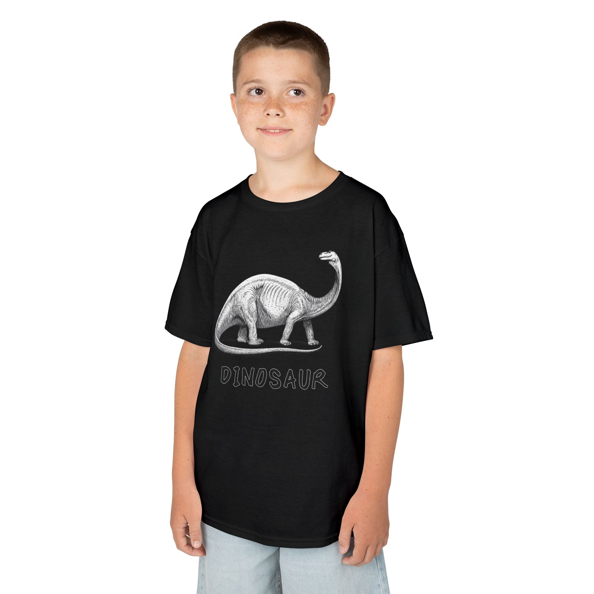 Soft, midweight cotton tee printed with a hand-sketched dinosaur illustration — a quiet mix of curiosity and old-world wonder. The crew neck and classic cut keep movement easy for busy play and discovery. Let this tee be the one your kid reaches for when they want to explore the backyard, fossil hunt at the museum, or curl up with a picture book about giants from long ago. The subtle monochrome art and simple lettering make it easy to layer under jackets or pair with jeans and sneakers for everyday adventures.