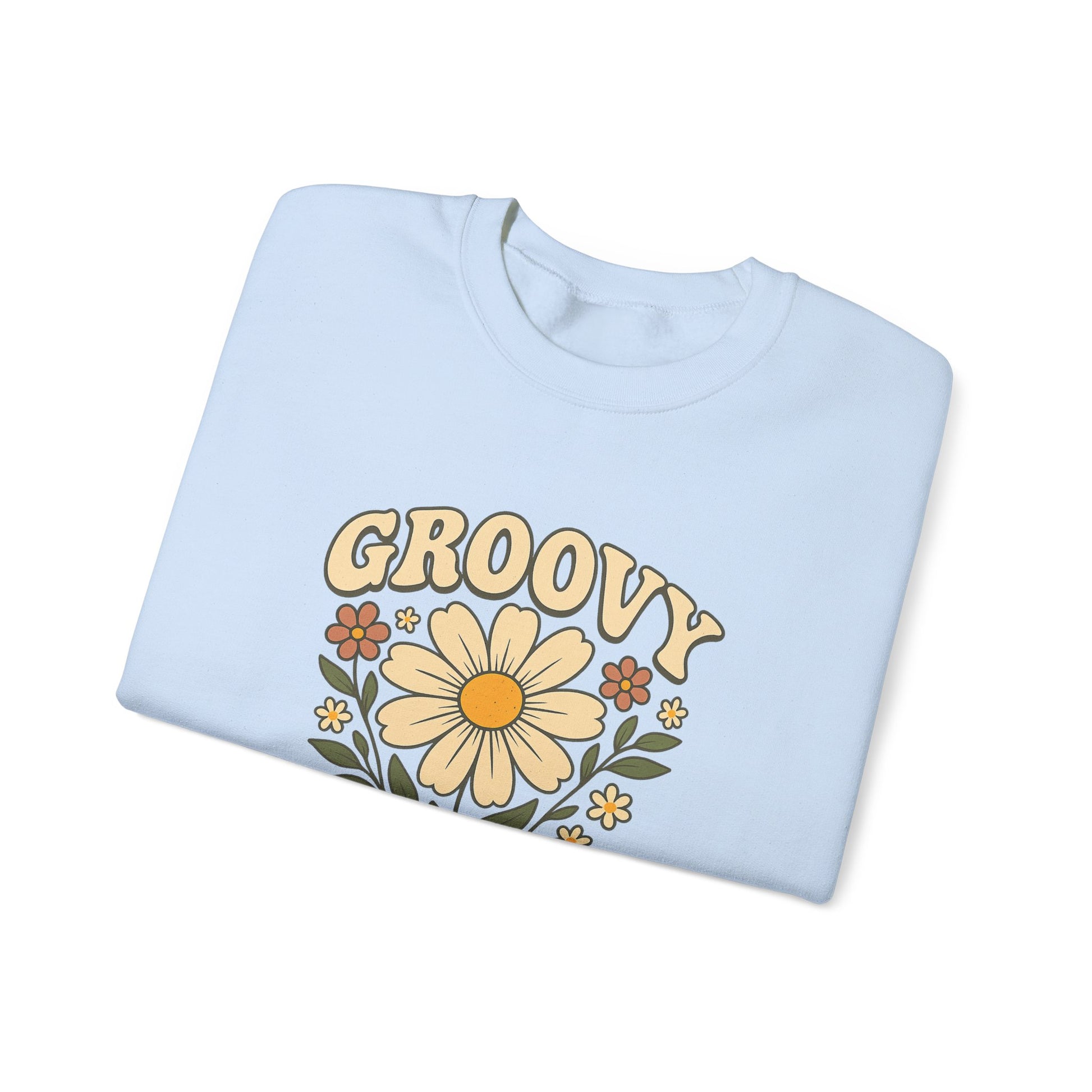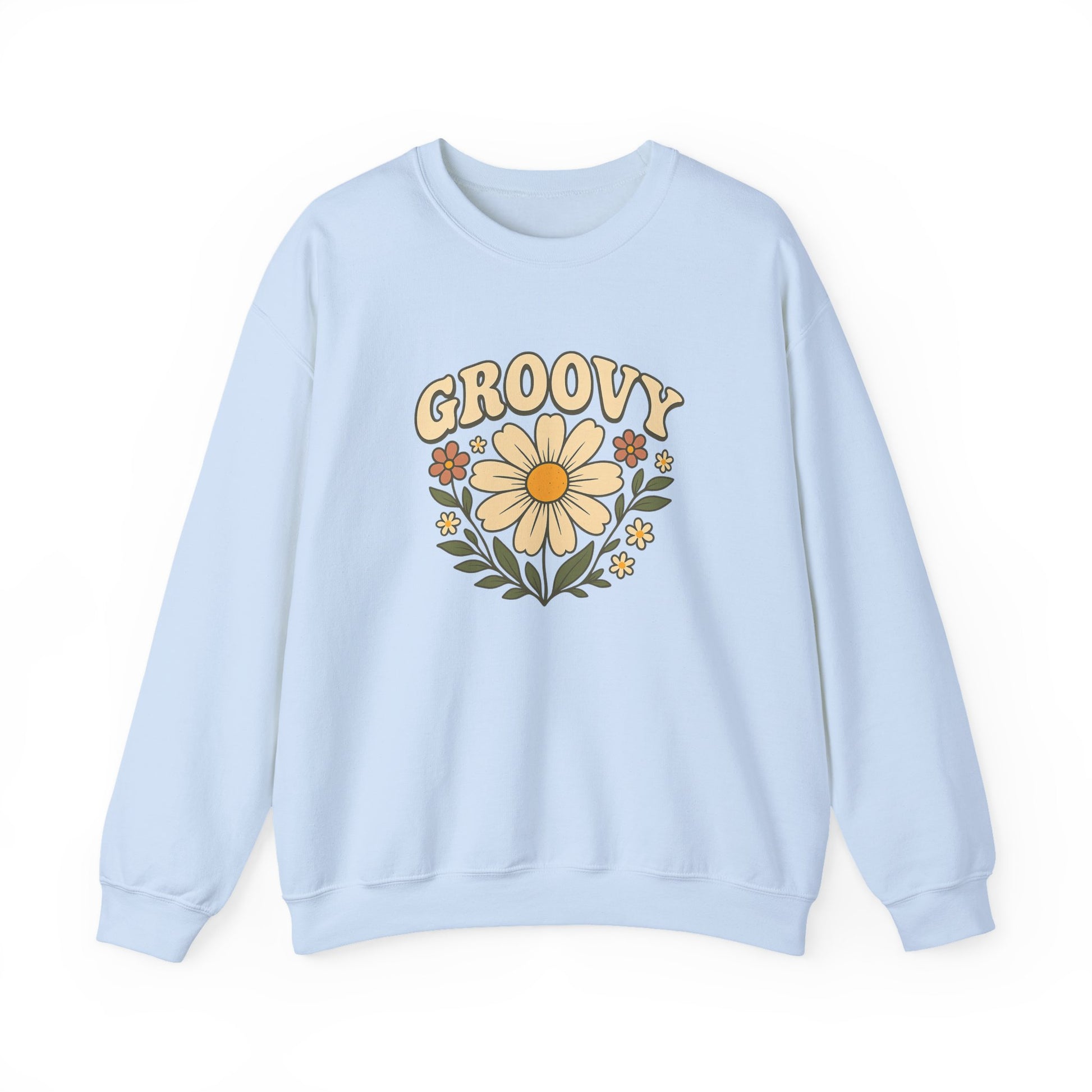 Soft, sunlit nostalgia wrapped in a cozy crewneck. This sweatshirt feels like a slow morning in a favorite vintage tee—light, warm, and a little whimsical. A hand-drawn daisy and warm, rounded lettering read “GROOVY,” sitting comfortably on the chest so the artwork becomes part of your everyday rhythm. Wear it on walks through leafy streets, while sipping tea at a record store, or layered for bonfire evenings. The clean cream background keeps the art front-and-center and pairs easily with high-waist jeans, corduroy skirts, or well-loved sneakers. It’s made to be lived in: breathable, soft, and built to keep its shape through seasons of wear.